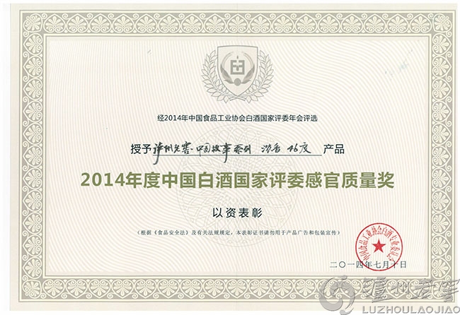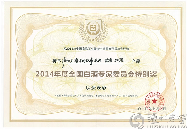 此次年會活動上,共有近百款酒樣送評,與會專家、白酒國家評委對酒樣進行了感官質(zhì)量品評和綜合評審,以暗評形式先后進行了多倫次的打分,最終,作為瀘州老窖在2014年推出的新品,“中國故事”憑借其窖香幽雅、舒適、入口綿甜柔和、酒體豐滿、陳味突出、余味悠長的產(chǎn)品風格特點獲得了專家評審的高度肯定,并一舉獲評“中國白酒國家評委感官質(zhì)量獎”和“全國白酒專家委員會特別獎”,再一次印證了瀘州老窖在濃香型白酒領域超凡的產(chǎn)品設計水準,反映了多年來瀘州老窖在品質(zhì)把控方面的突出成績。
