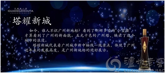 2016年7月1日,在中國共產(chǎn)黨95周年華誕這個舉國歡慶的日子里,由瀘州老窖定制酒有限公司榮譽出品,“廣州塔羊城新八景”酒在廣州召開了新品發(fā)布會,并取得圓滿成功。標志著繼“廣州塔”酒取得輝煌后,瀘州老窖定制酒有限公司與廣州塔戰(zhàn)略合作再次向前邁出了更加堅實的一步。