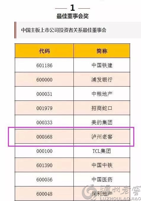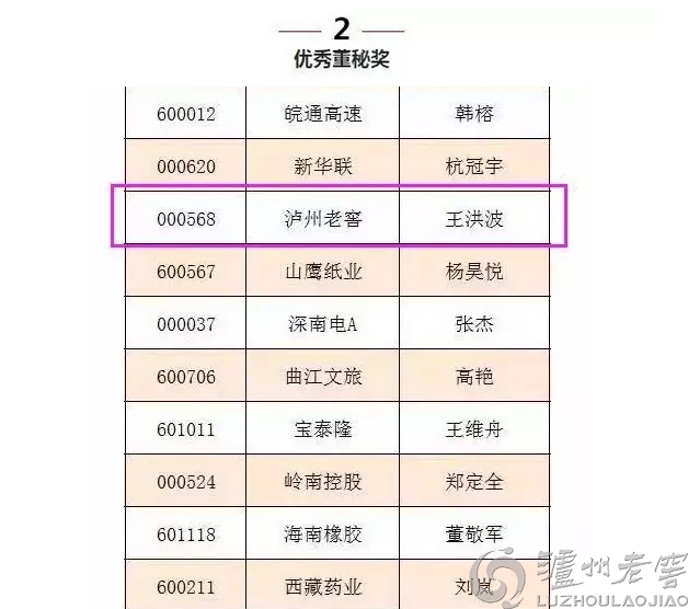 瀘州老窖(000568)榮獲 “中國主板上市公司投資者關(guān)系最佳董事會”,瀘州老窖股份有限公司董事、黨委副書記、常務(wù)副總經(jīng)理,董事會秘書王洪波榮獲“中國主板上市公司投資者關(guān)系優(yōu)秀董秘”!