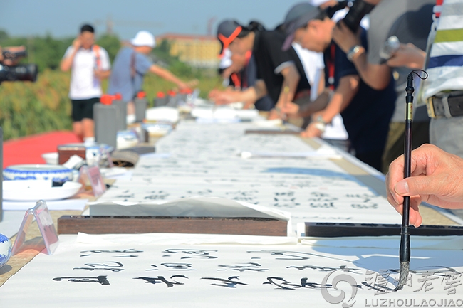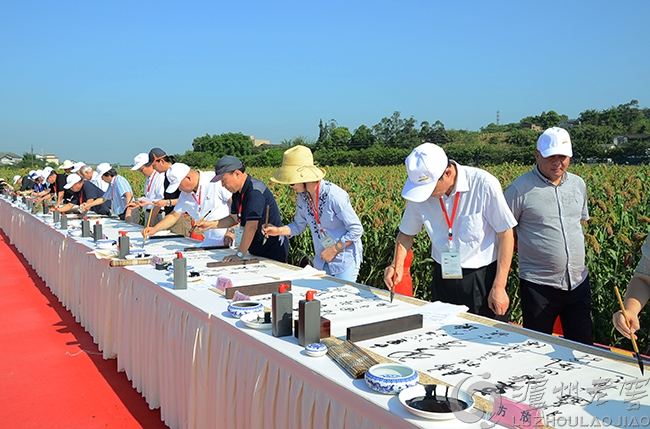 20余位書法家在瀘州老窖有機高粱地里共同完成《高粱紅了》賦書法長卷