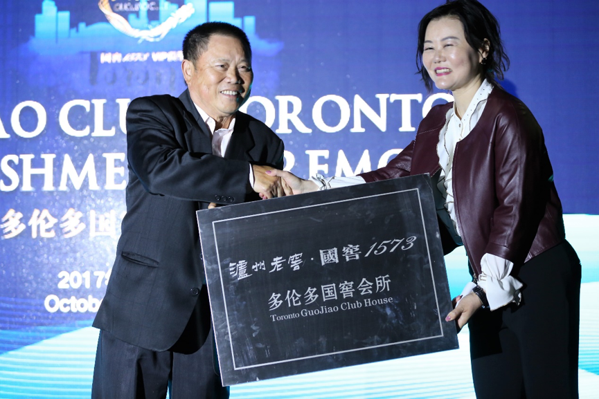 瀘州老窖國(guó)際發(fā)展(香港)有限公司總經(jīng)理許露女士為“國(guó)窖1573多倫多國(guó)窖薈所”授牌